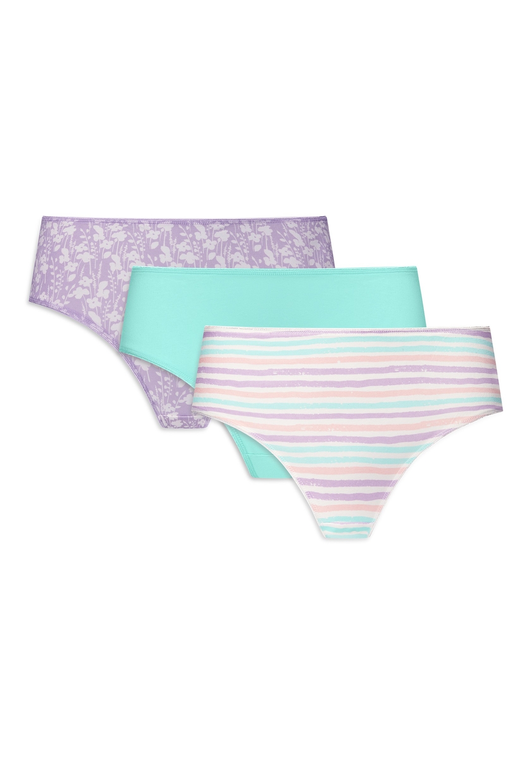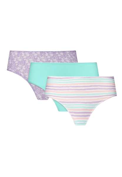 Лиловый, мятный и разноцветный варианты делают базовое бельё визуально более женственным и стильным.